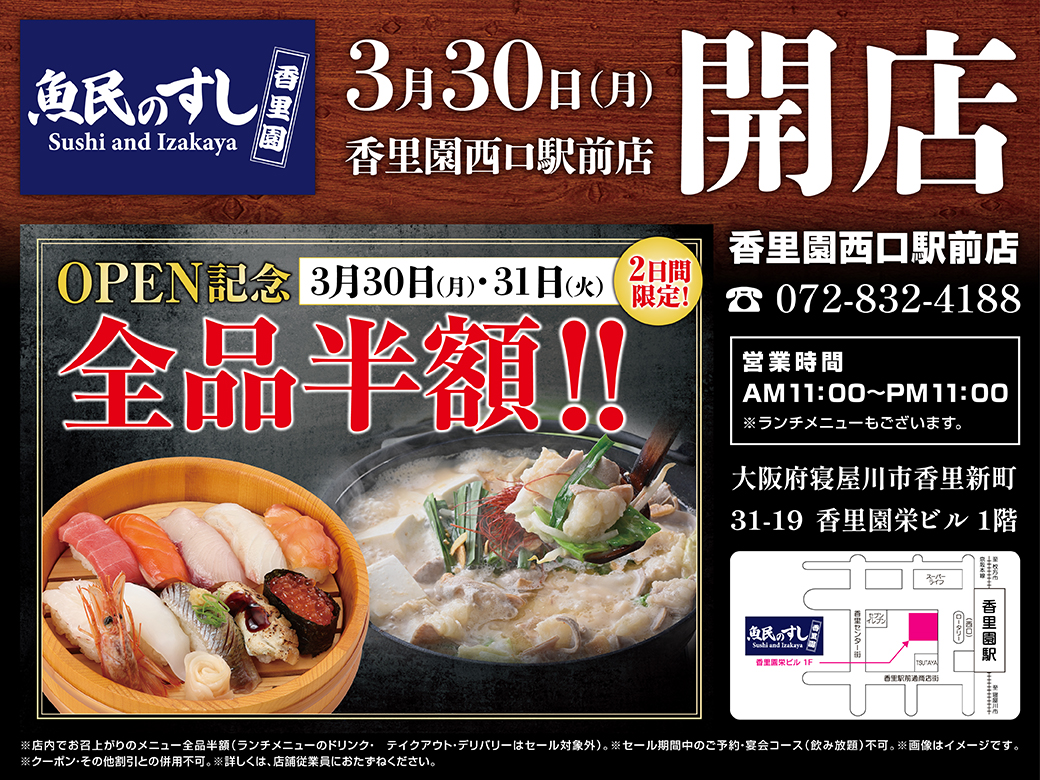 濱焼北海道魚萬 枚方市北口駅前店営業時間外 - 営業開始 12:00